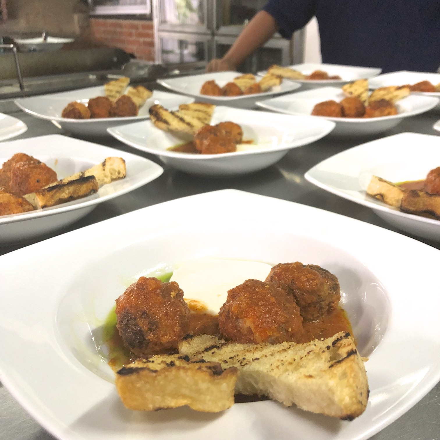 SAUTÉED USDA BEEF MEATBALLS STUFFED WITH FRESH MOZZARELLA AND STEWED IN A HOMEMADE BASIL MARINARA SAUCE