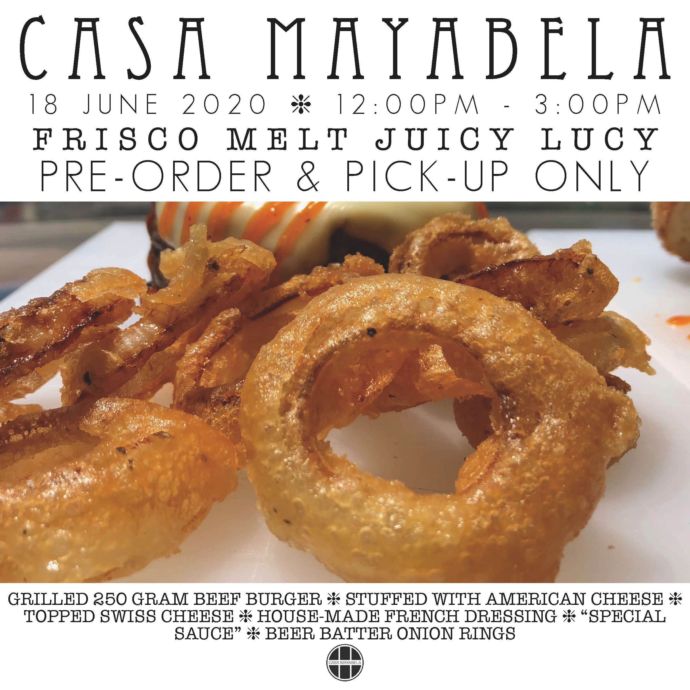 STUFFED WITH AMERICAN CHEESE ❈ TOPPED SWISS CHEESE ❈ FRENCH DRESSING ❈ "SPECIAL SAUCE" ❈ BEER BATTERED ONION RINGS
