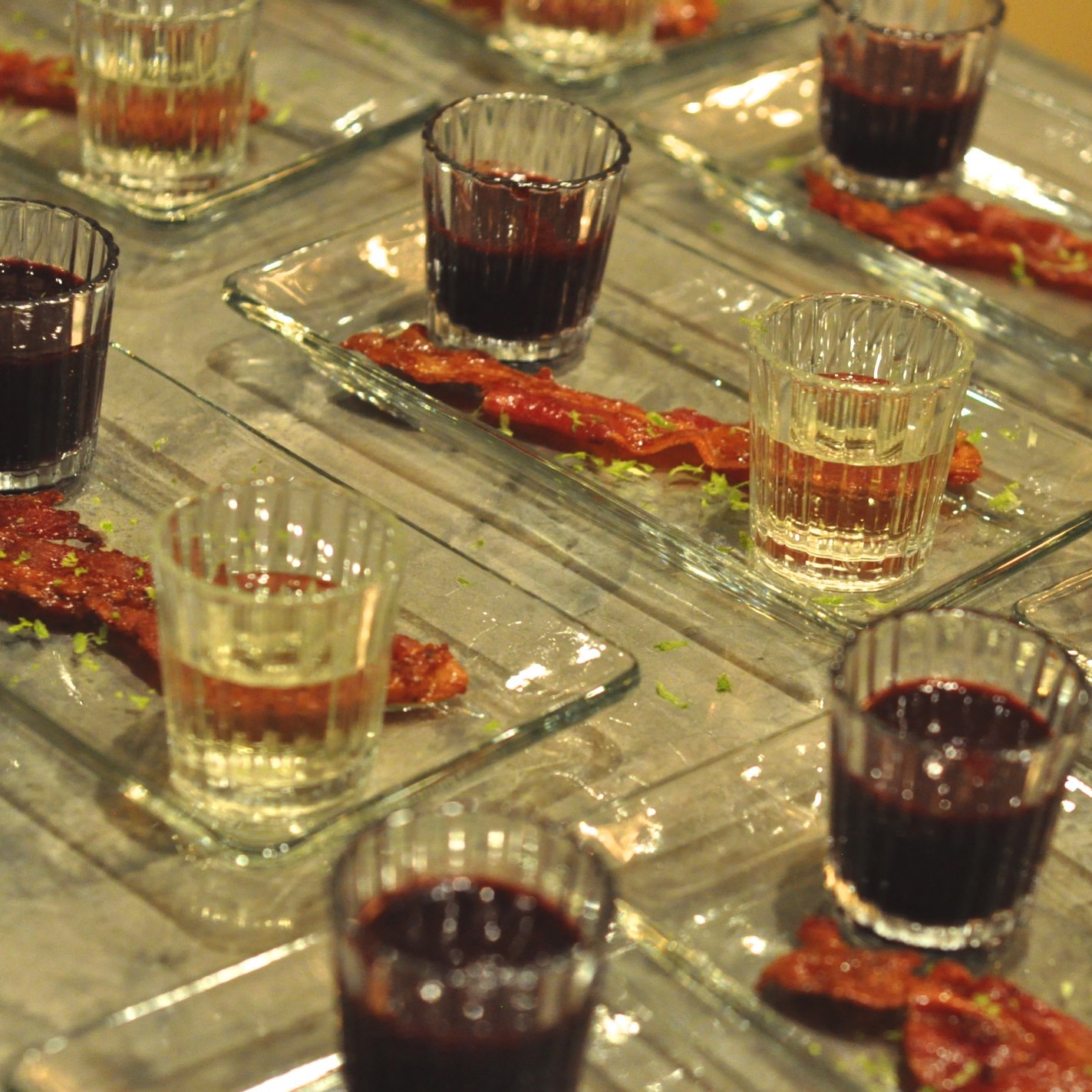 CANDY BACON W/ TEQUILA REPOSADO & BLUEBERRY SANGRIA
