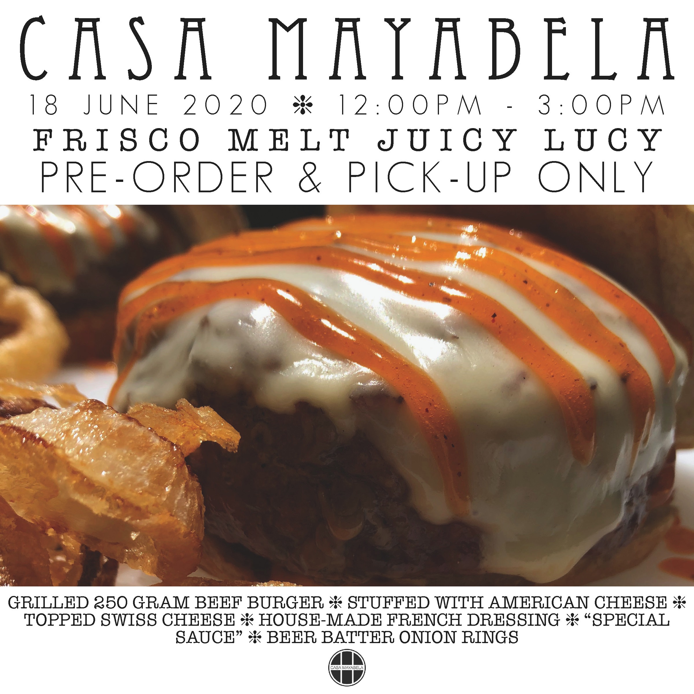 STUFFED WITH AMERICAN CHEESE ❈ TOPPED SWISS CHEESE ❈ FRENCH DRESSING ❈ "SPECIAL SAUCE" ❈ BEER BATTERED ONION RINGS