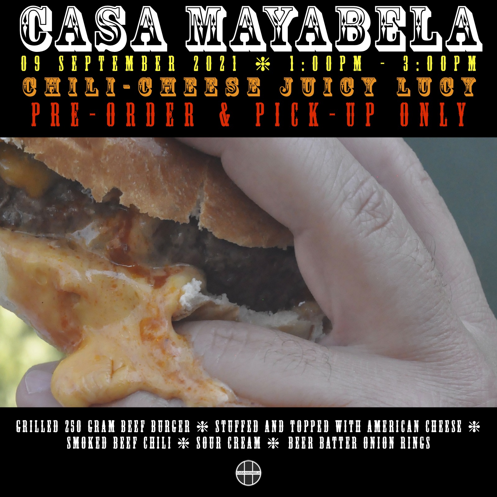 GRILLED 250 GRAM BEEF BURGER ❈ STUFFED AND TOPPED WITH AMERICAN CHEESE ❈ SMOKED BEEF CHILI ❈ SOUR CREAM ❈ BEER BATTER ONION RINGS